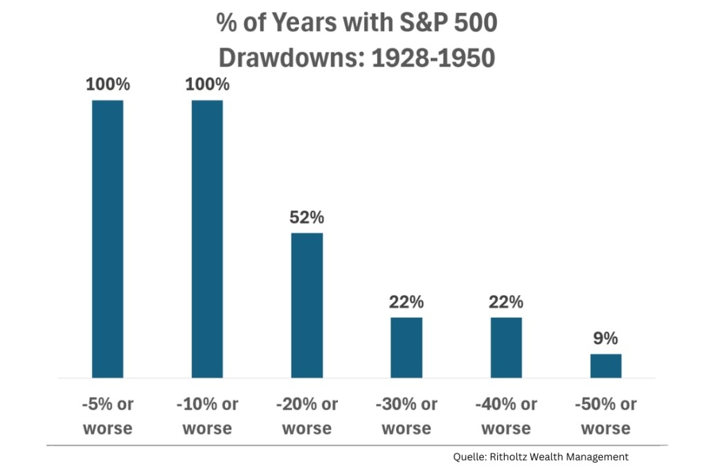 - In der Hälfte aller Jahre kam es zu einem Bärenmarkt (Rückgang > 20%).